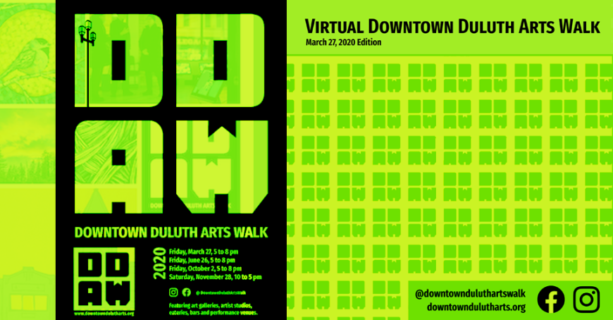 The DDAC produces the Downtown Duluth Arts Walk (DDAW) , an in-person event showcasing the diverse and vibrant arts scene in Downtown Duluth. The DDAC also created and produced the Virtual Downtown Duluth Arts Walk (VDDAW) in 2020 in order to promote the larger Duluth arts scene.